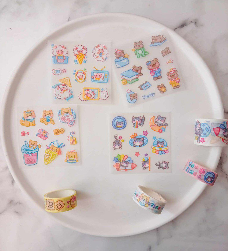 هر پک شامل 4 برگ استیکر برش خورده و 4 عدد چسب واشی طرح دار می باشد!