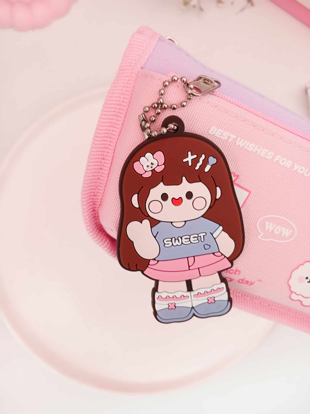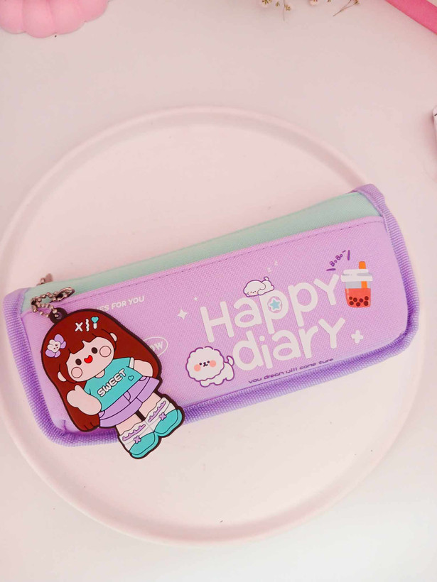 جامدادی دو زیپ happy diary با آویز سیلیکونی دختر